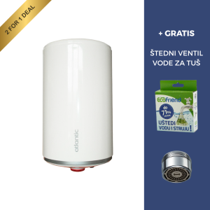 Kupnjom bilo kojeg Atlantic bojlera, zaradit ćete gratis ŠTEDNI SET 71 - set sa štednim ventilom koji smanjuje protok vode, ali bez gubitka komfora. Montira se na slavine i tuš ručice. Štedi vodu, a posljedično i struju (koja je potrebna za zagrijavanje vode), kao i emisije CO2. Vrlo je jednostavan za montažu i lako se održava. Set se sastoji od 1 štednog ventila za tuš.