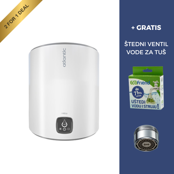 Kupnjom bilo kojeg Atlantic bojlera, zaradit ćete gratis ŠTEDNI SET 71 - set sa štednim ventilom koji smanjuje protok vode, ali bez gubitka komfora. Montira se na slavine i tuš ručice. Štedi vodu, a posljedično i struju (koja je potrebna za zagrijavanje vode), kao i emisije CO2. Vrlo je jednostavan za montažu i lako se održava. Set se sastoji od 1 štednog ventila za tuš.