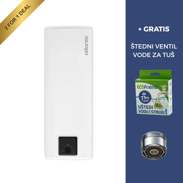 Kupnjom bilo kojeg Atlantic bojlera, zaradit ćete gratis ŠTEDNI SET 71 - set sa štednim ventilom koji smanjuje protok vode, ali bez gubitka komfora. Montira se na slavine i tuš ručice. Štedi vodu, a posljedično i struju (koja je potrebna za zagrijavanje vode), kao i emisije CO2. Vrlo je jednostavan za montažu i lako se održava. Set se sastoji od 1 štednog ventila za tuš.
