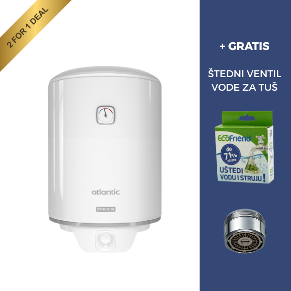 Kupnjom bilo kojeg Atlantic bojlera, zaradit ćete gratis ŠTEDNI SET 71 - set sa štednim ventilom koji smanjuje protok vode, ali bez gubitka komfora. Montira se na slavine i tuš ručice. Štedi vodu, a posljedično i struju (koja je potrebna za zagrijavanje vode), kao i emisije CO2. Vrlo je jednostavan za montažu i lako se održava. Set se sastoji od 1 štednog ventila za tuš.