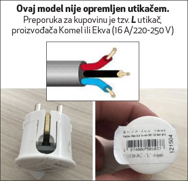- Uređaj dolazi bez utikača (fabrički)