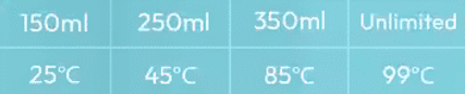 - 4 različita odabira količine vode: 150ml / 250ml / 350ml / unlimited (beskonačno)