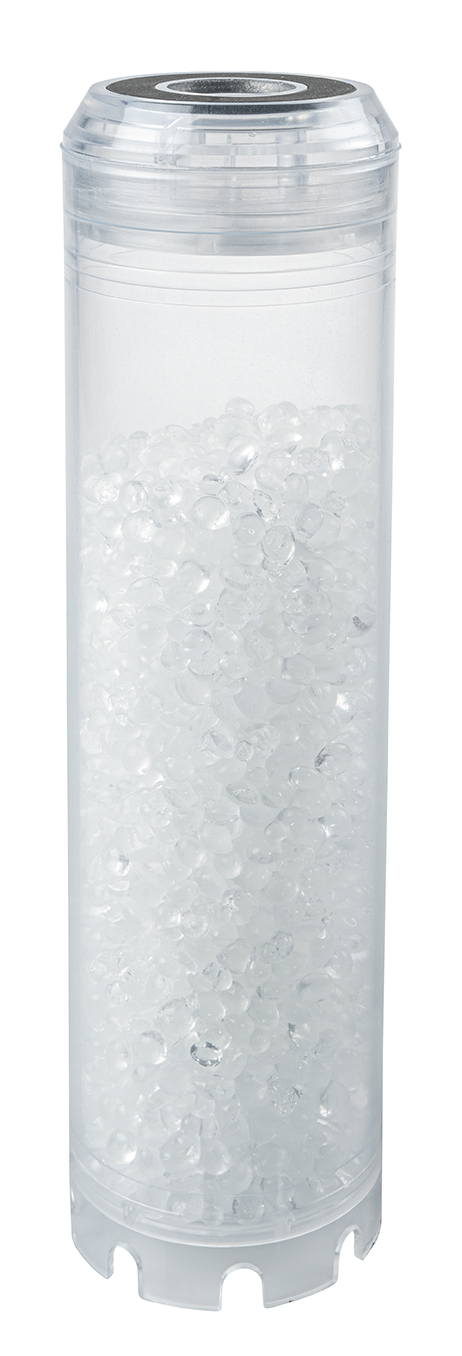 Plastična posuda napunjena certificiranim ScaleArmor medijem: tretman protiv kamenca i korozije s dokazanom učinkovitošću koji s vremenom uklanja stare vapnenaste naslage i nudi zaštitu od korozije za bojlere, cijevi, pumpe i uređaje.